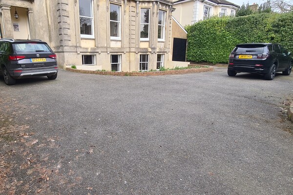The driveway was reshaped by our garden landscapers to echo the fine lines of the house façade, finished with bound gravel for a polished, low-maintenance look.